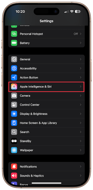 1. To enable ChatGPT on your iPhone, launch the Settings app and open Apple Intelligence & Siri settings.