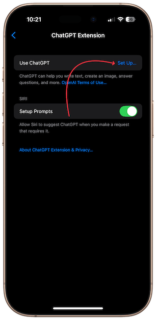 3. Now tap the Set Up.. button next to the Use ChatGPT option.