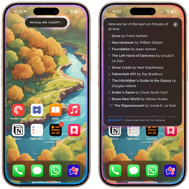 There’s a workaround to resolve this issue. If you want your questions answered by ChatGPT, simply add “Ask ChatGPT” as a keyword at the start of your questions. For example, I can say, “Ask ChatGPT about the 10 best fantasy series of 2024.” Siri will directly send the question to ChatGPT without an intermediate step.