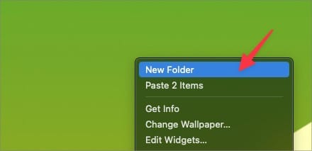 1. Create a folder anywhere on your Mac. It will serve as the app folder we will add to the Dock. I will create a new folder on the Desktop using the right-click menu.
