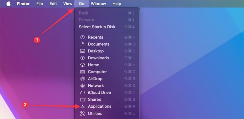 2. Now click anywhere on the Mac to select Finder and use the Go menu to launch the Applications folder.