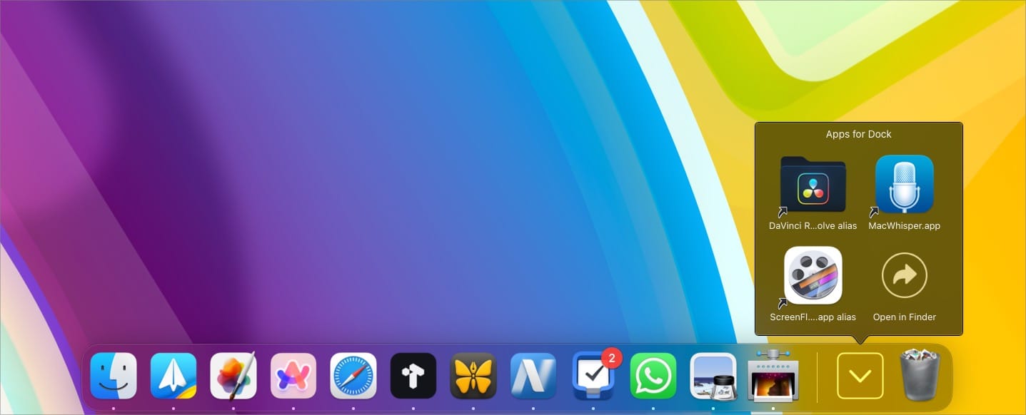 Since macOS doesn’t allow you to create and add app folders in Mac Dock, we will utilize the Alias feature of macOS to accomplish this task. You can create aliases for files and put them in different folders to open files from anywhere without moving the original file.