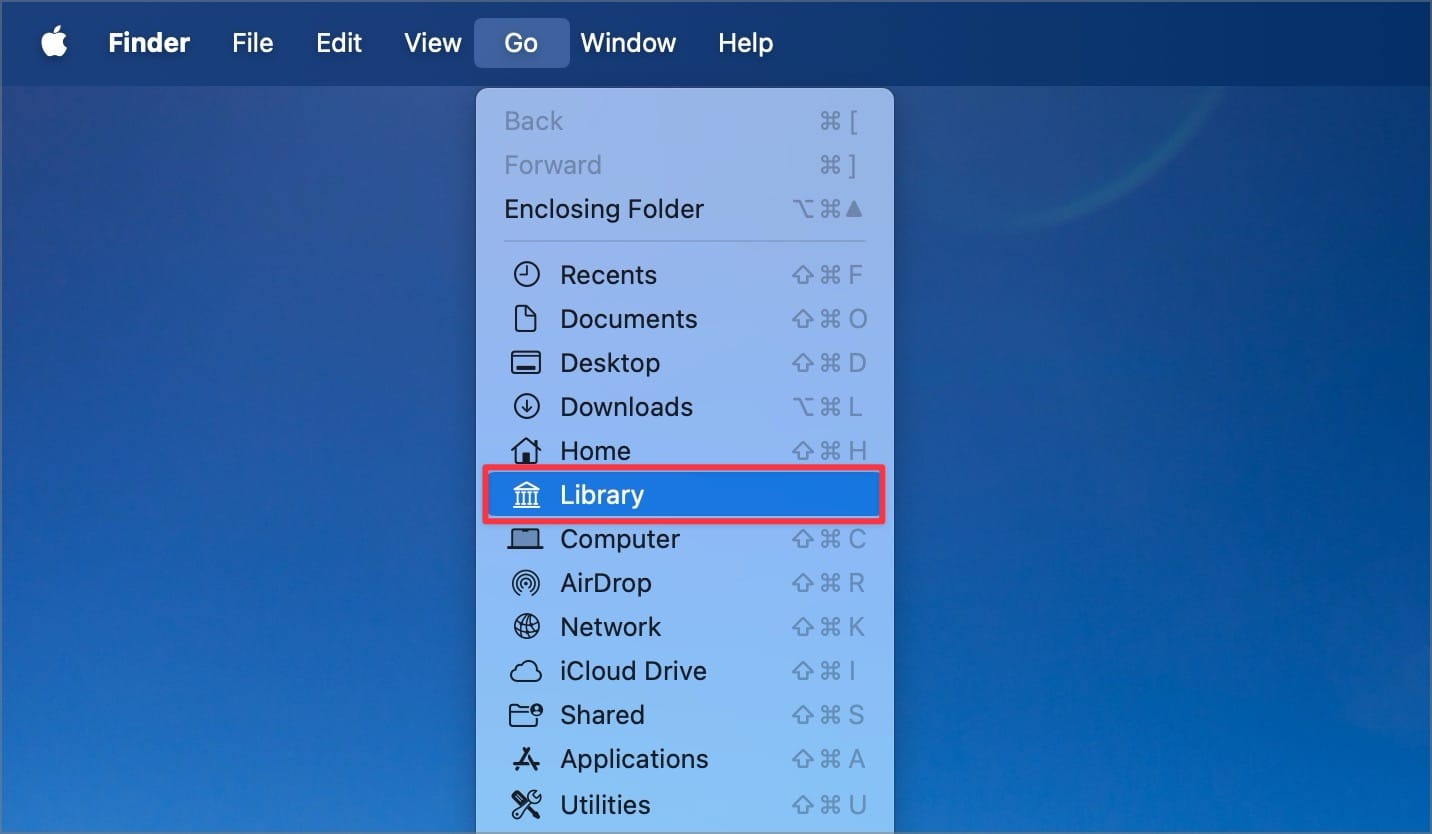 1. Click anywhere on your Mac’s desktop to select Finder and click on the Go Menu.