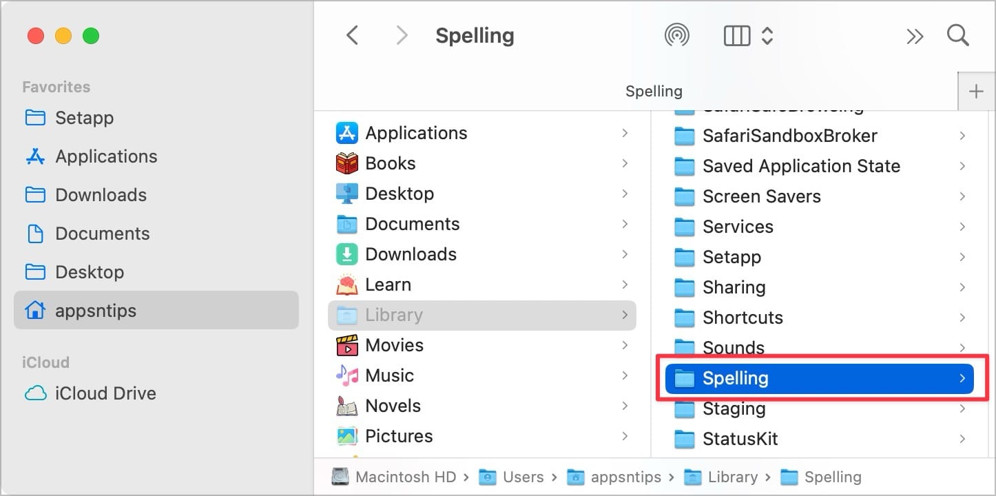 3. Find the Spelling folder and open it.