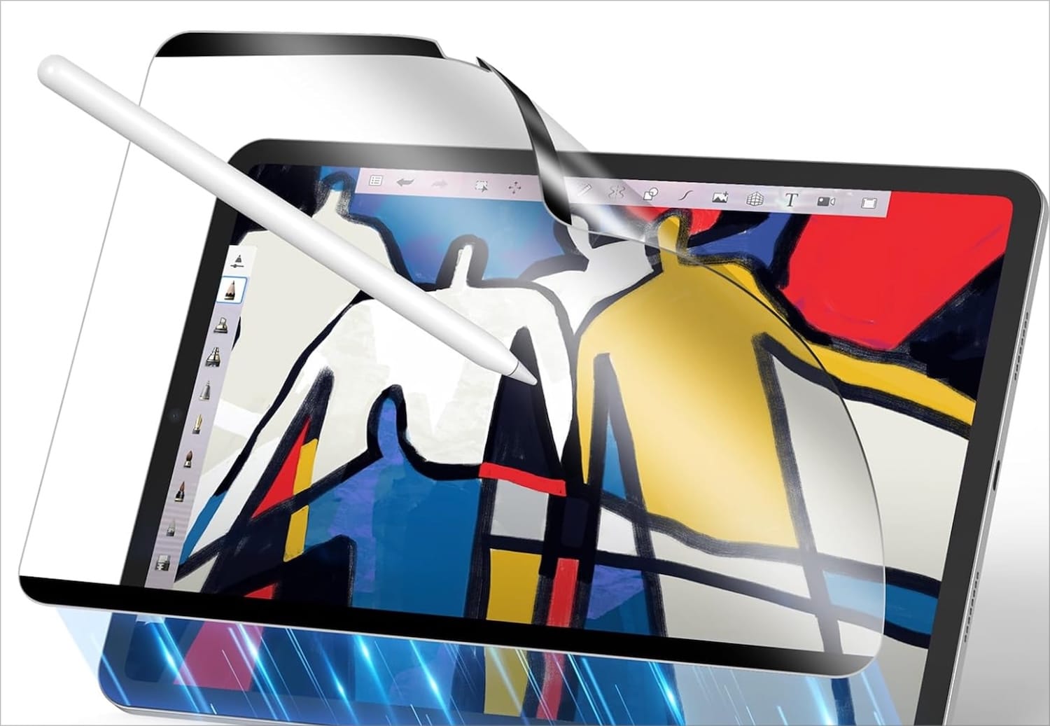 The ESR paper-feel magnetic screen protector is a convenient and affordable option for users who use their iPad for drawing, note-taking or other tasks that require Apple Pencil input. The magnetic design allows for easy application and removal when needed. The specially treated surface transforms your iPad display into a digital canvas, providing a paper-like feel. I've used this screen protector on my previous iPad Pro, and it has worked well.