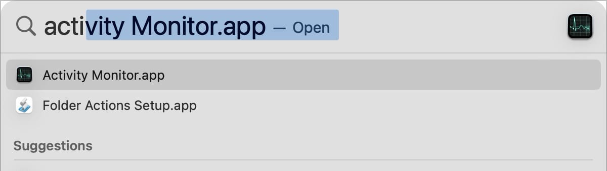 1. Use Command+Space (⌘ ␣) to bring up Spotlight and search for Activity Monitor. Hit enter to launch the app.