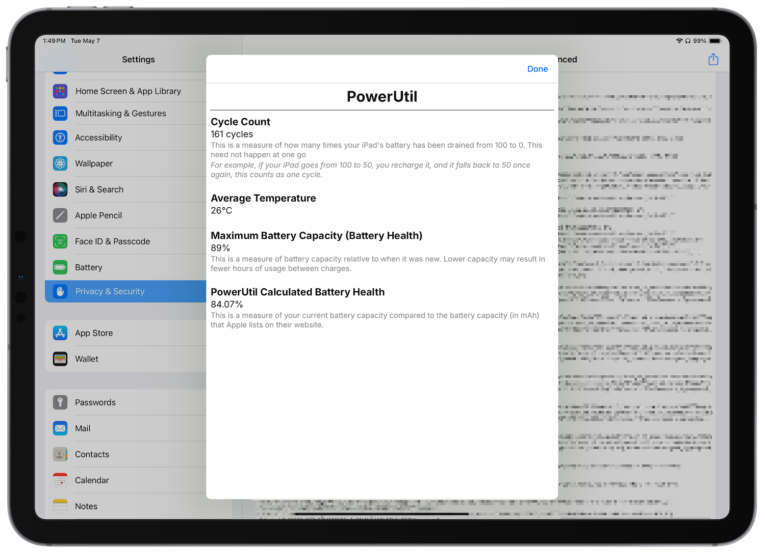 That’s it. As you can see in the screenshot, my iPad Pro has hit 161 cycles with maximum battery capacity down to 89%.