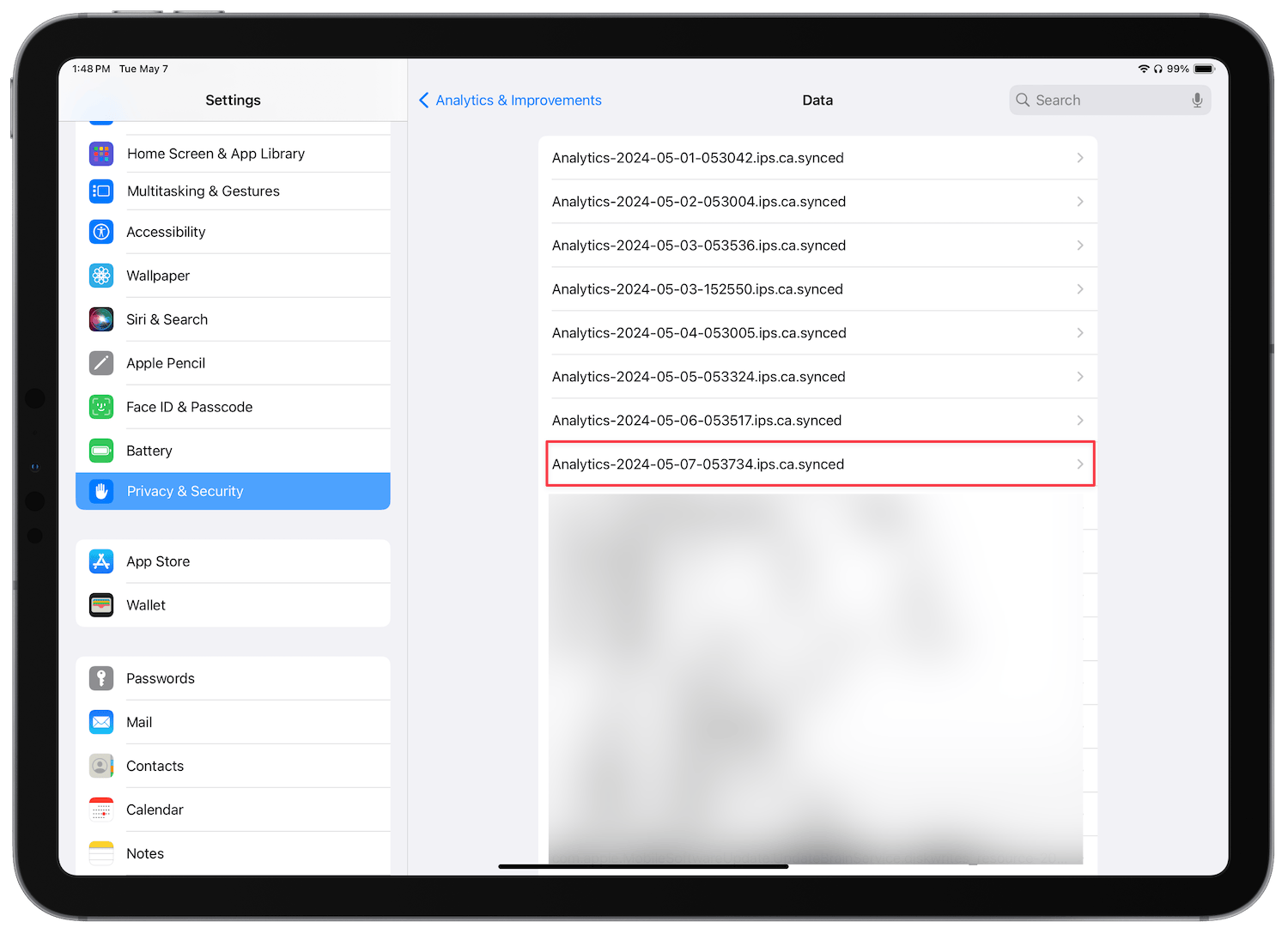 3. You will find dozens of analytics files here. Tap the latest file to get the most up-to-date information. For example, I will open the analytics report generated on 7th May as that’s the latest file.