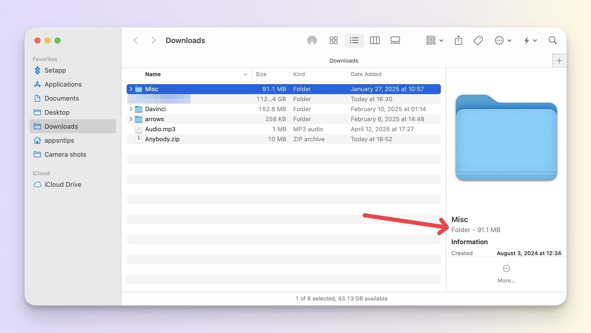 View folder size using Preview Panel