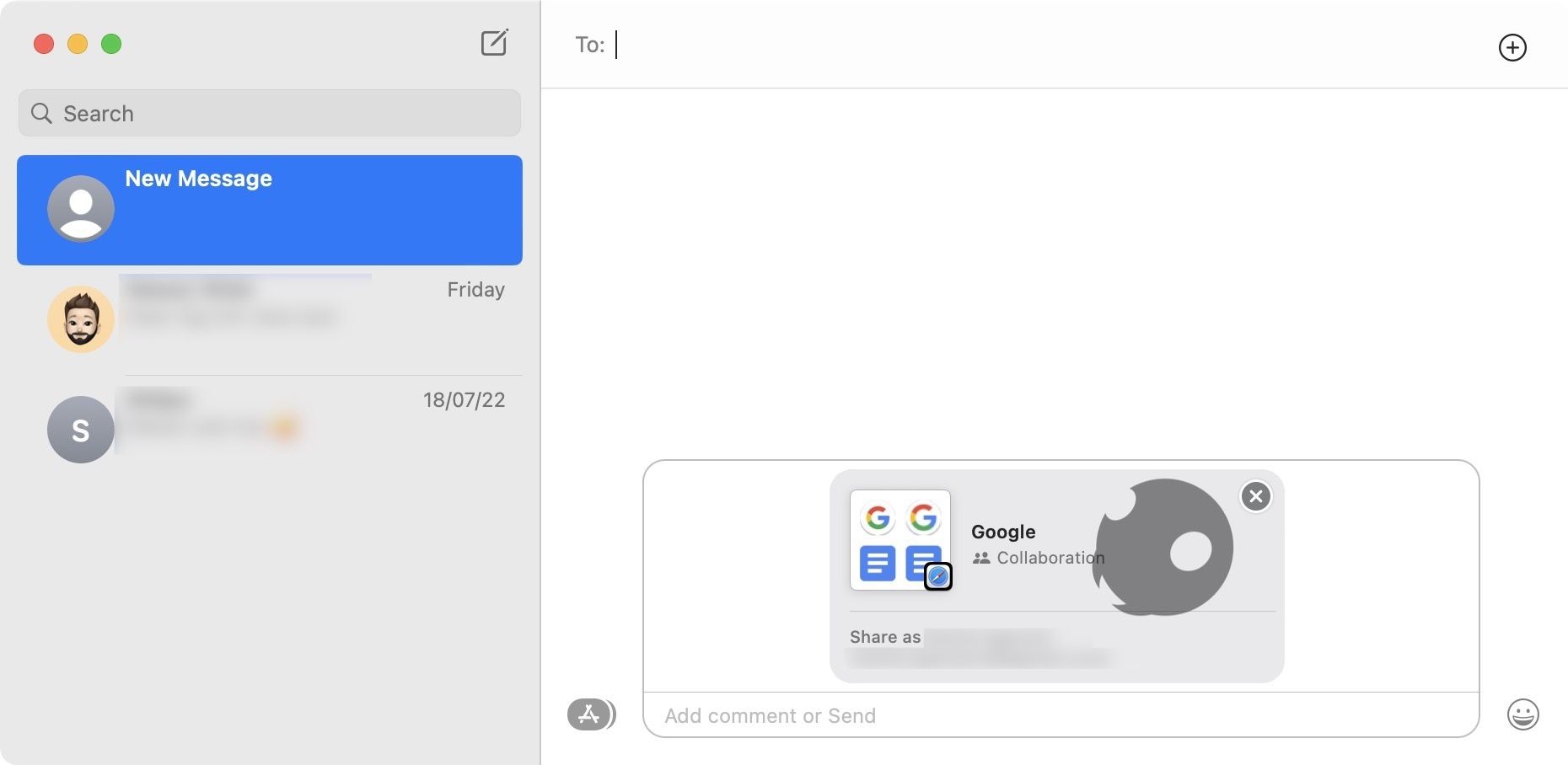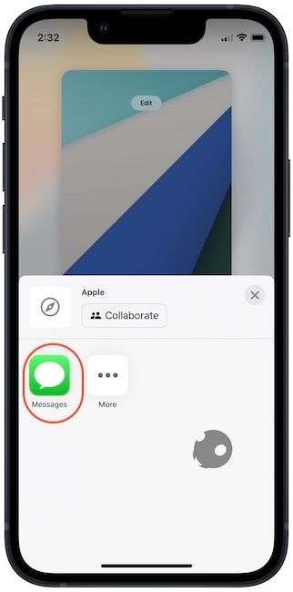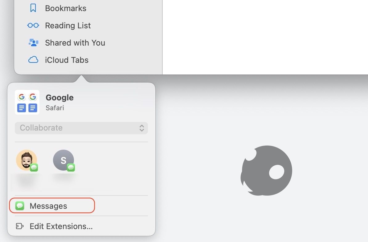 4. Click on the contact name with whom you want to share the Tab Group if you can see it in the quick suggestion list. Otherwise, click on Messages.