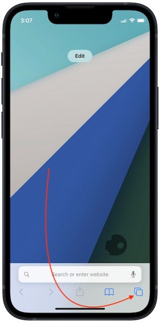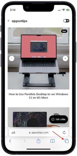 2. Open all the websites you want to keep in a Tab Group in separate tabs. Let’s create an Apple-focused Tab Group. Tap on the Tabs button in the bottom-right corner.