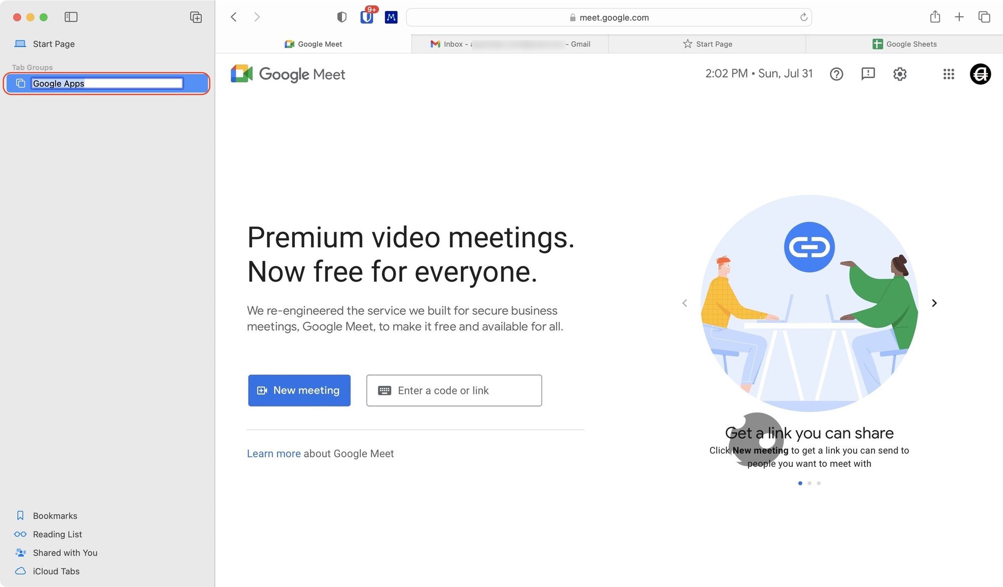 2. Open all the websites in separate tabs that you want to group together. Let’s say you want to create a Safari Tab Group for all your Google apps.