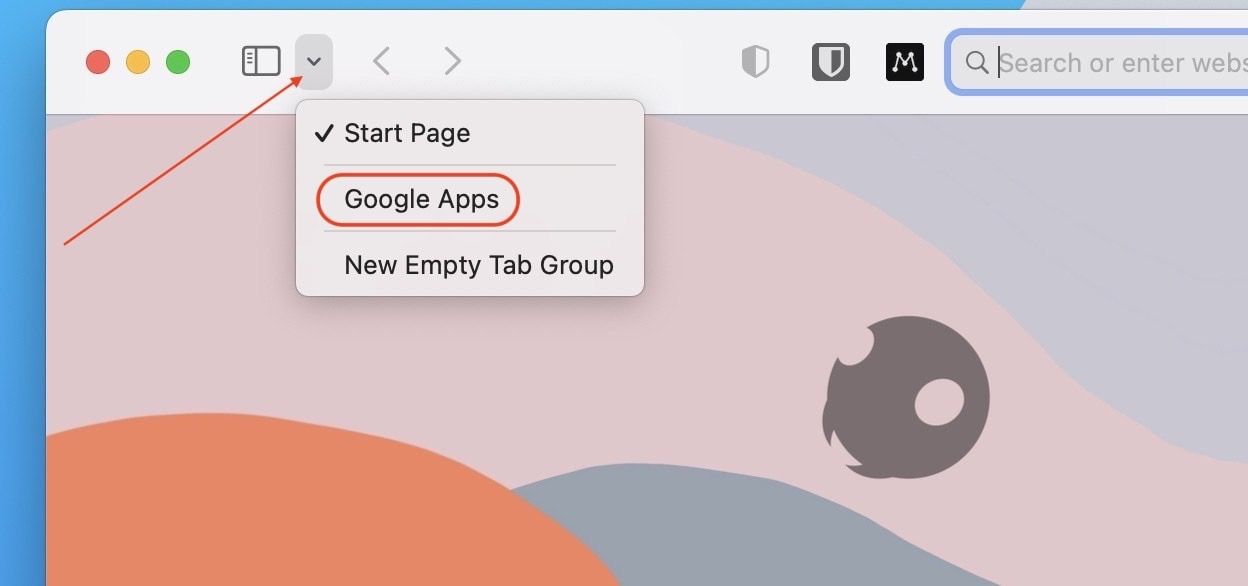 5. To access your Safari Tab Groups, click on the dropdown menu and select the Tab Group you want to open.
