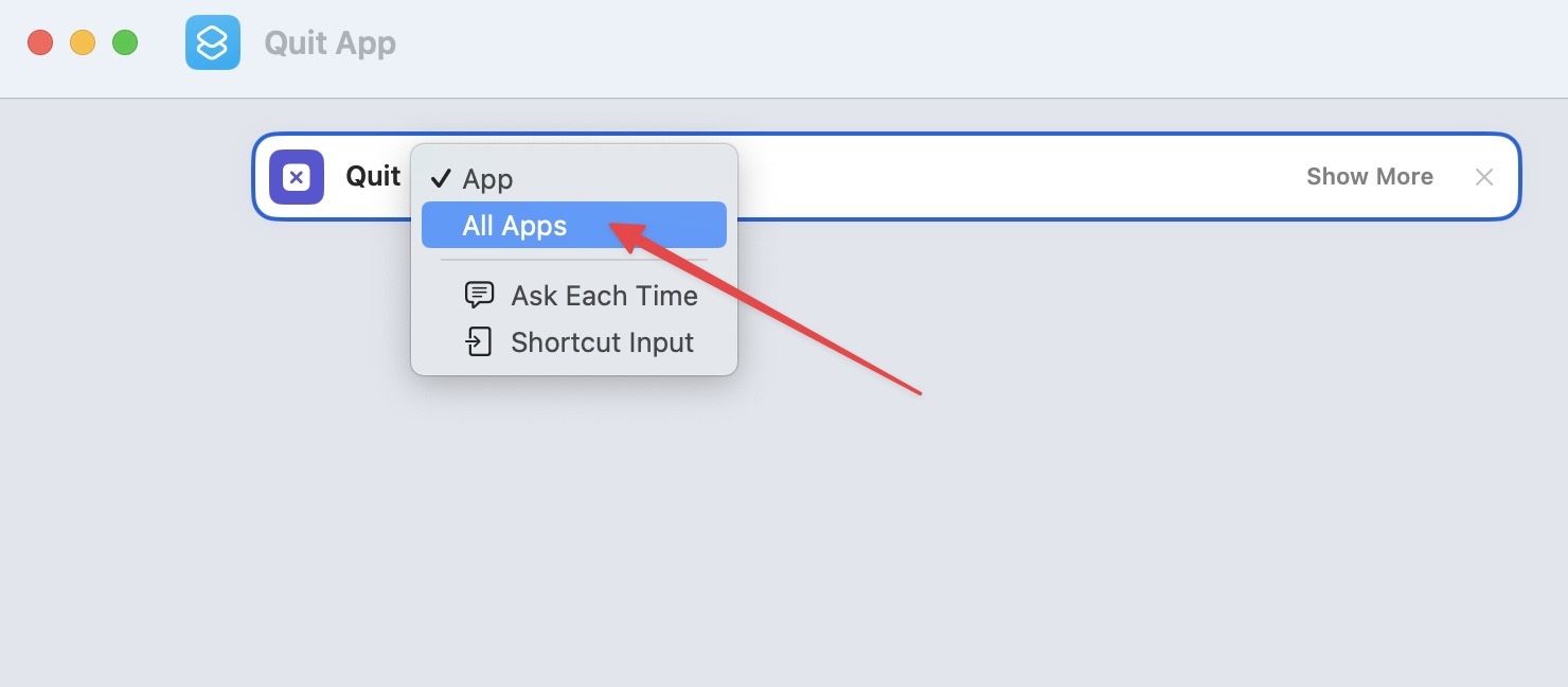 6. To run the shortcut either use the keyboard shortcut or click on the menu bar icon and choose the Quit App shortcut.