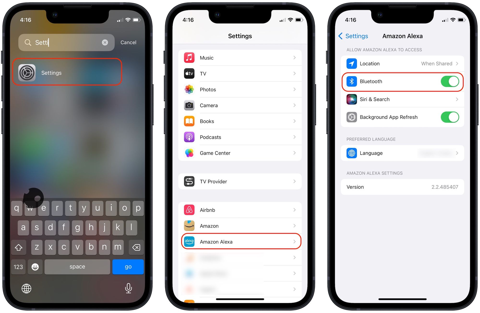 3 If you denied the permission by mistake, go to Settings → Amazon Alexa and enable the toggle next to Bluetooth.