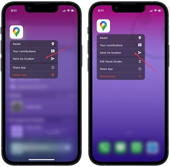 1. To share your current location using Google Maps on iPhone, long-press on the Google Maps icon.