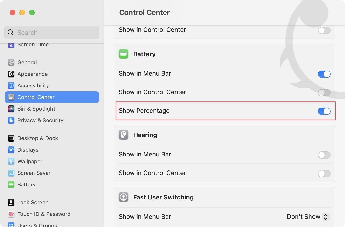 Show battery percentage in Mac Menu Bar in macOS Ventura