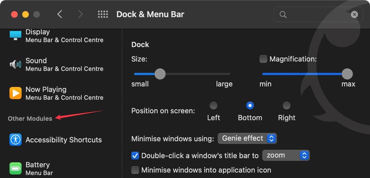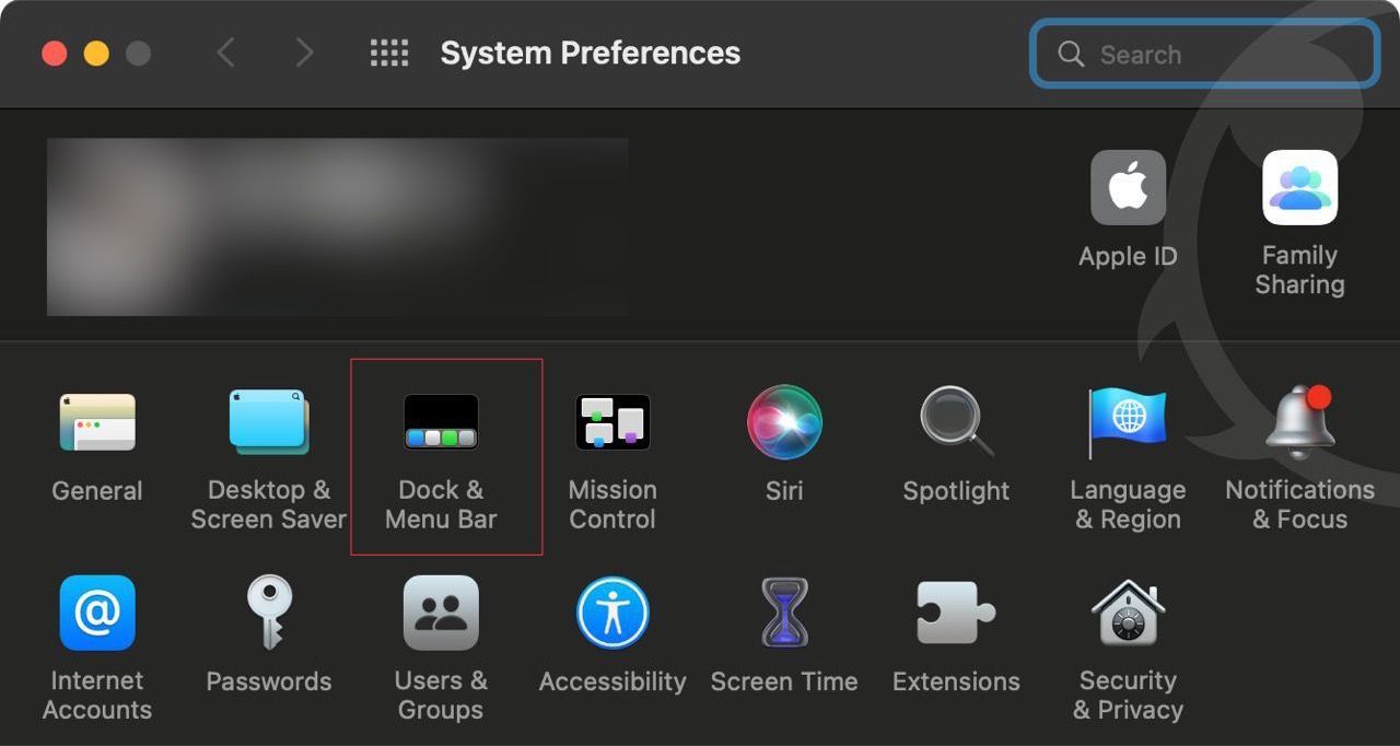 2. Click to open the Dock & Menu Bar setting.