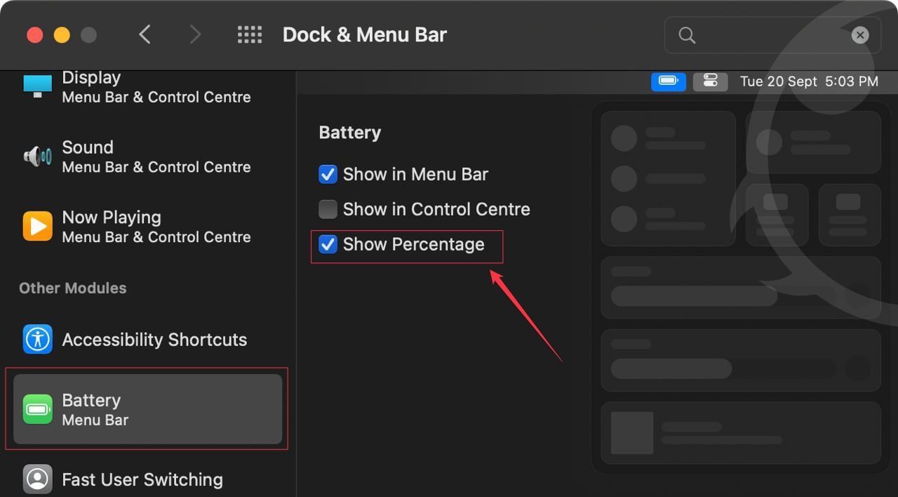 - Show battery percentage in Mac Menu Bar in macOS Ventura