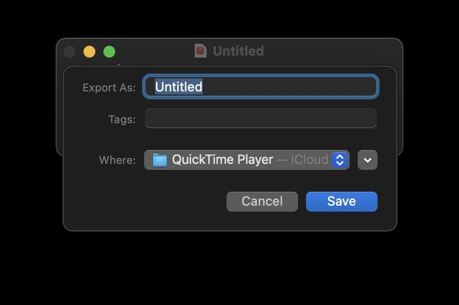 6. Hit the CMD+S keyboard shortcut to change the name of the recording name, add tags, and choose where to save the recording.
