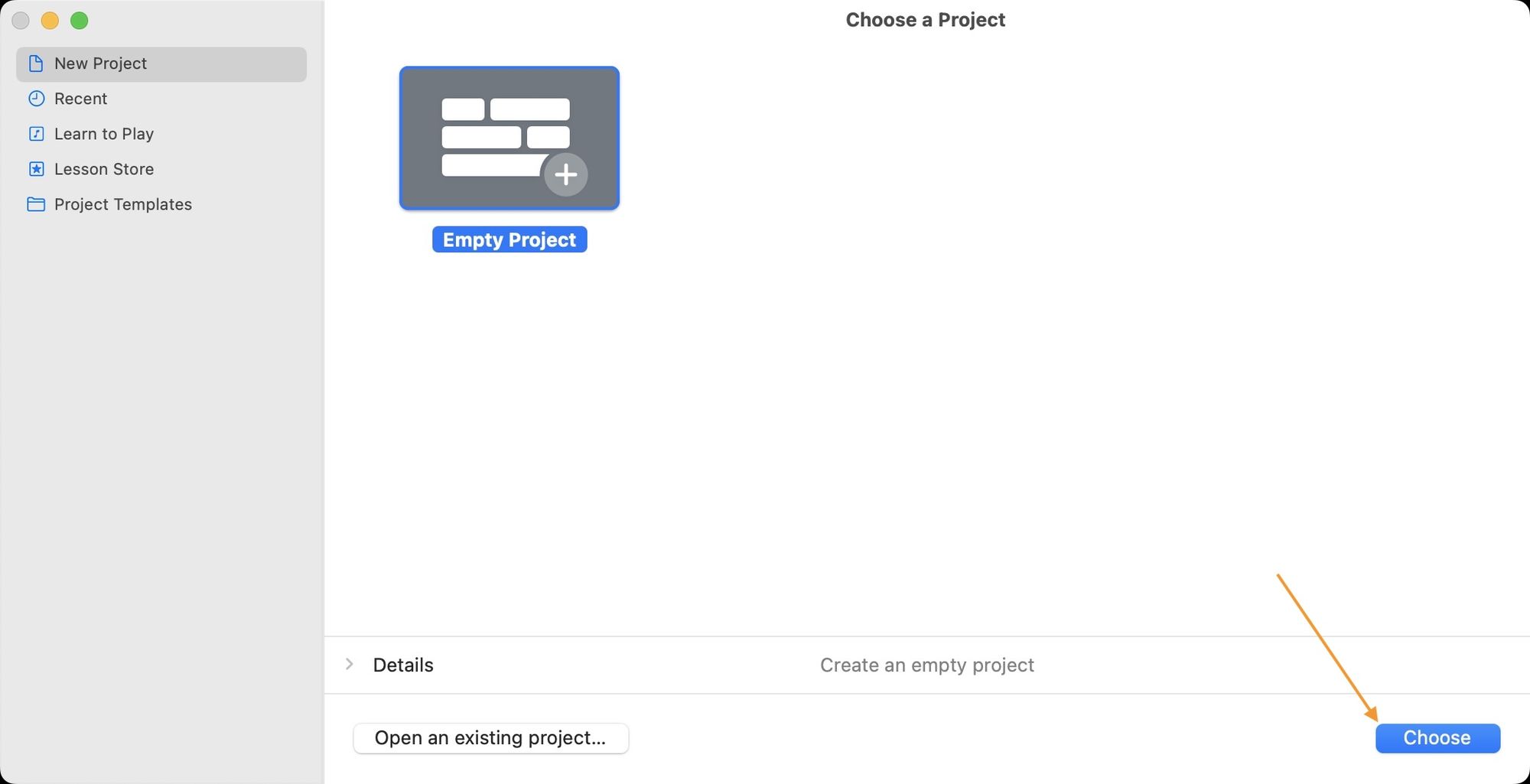 2. Click on Choose to create a new project.