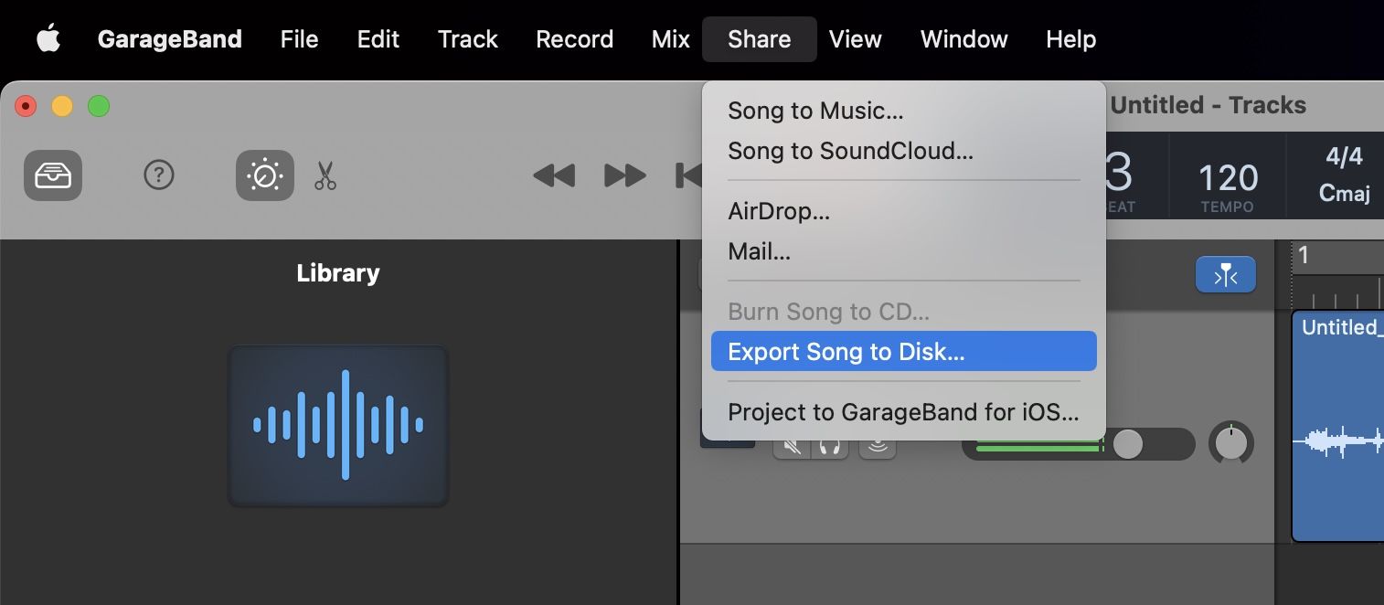 8. To save the file, go to Share → Export Song to Disk.