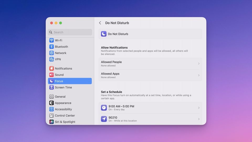 Similarly, you can use time, location, or app launch as a trigger for activating Do Not Disturb on your Mac. Since you can also set multiple schedules, you can also use a combination of these to trigger Do Not Disturb mode on your computer.