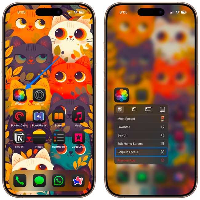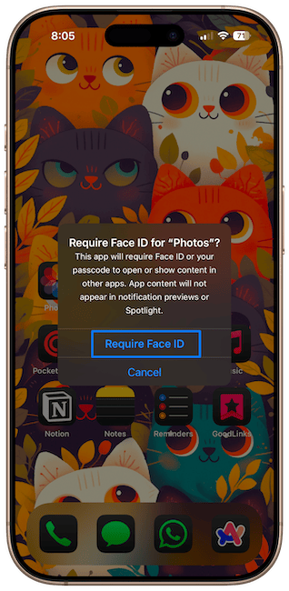1. Long-press on the Photos app icon and tap the Required Face ID option.