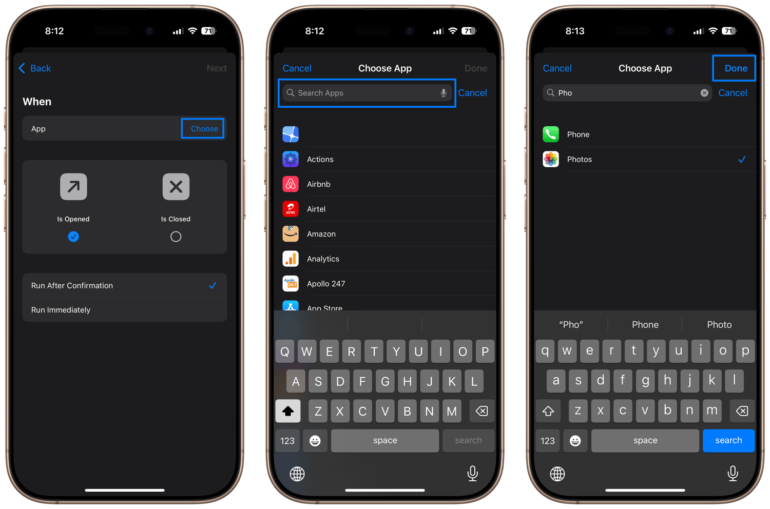 3. Tap the Choose button and select the Photos app. Tap the Done button in the top-right corner to save changes.