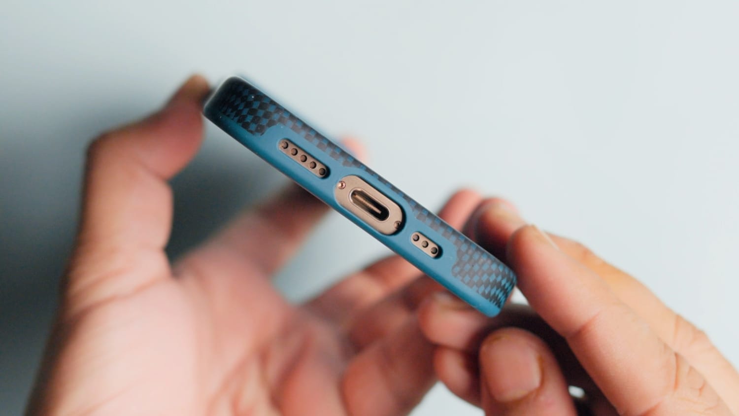 On the sides, you’ll notice the seamless transition between the aramid fiber and the TPU material. The edges are super-smooth, and you can’t feel the junction between the two materials.
