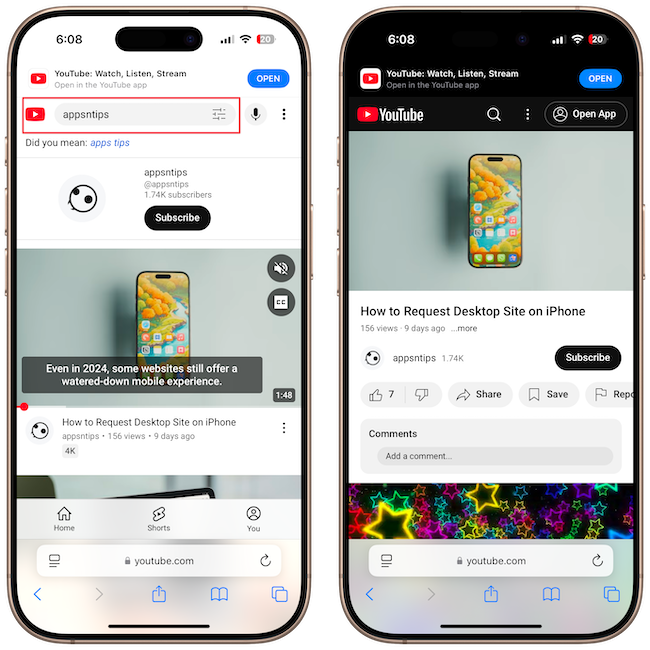 The best part is that once you set up YouTube to open in desktop mode in Safari, you won’t have to repeat those steps.