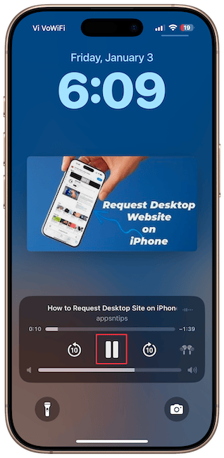 6. Swipe from the top-right corner to open the Control Center, and you will see the video as a playback option in the media control widget. Tap the play button to play the video.