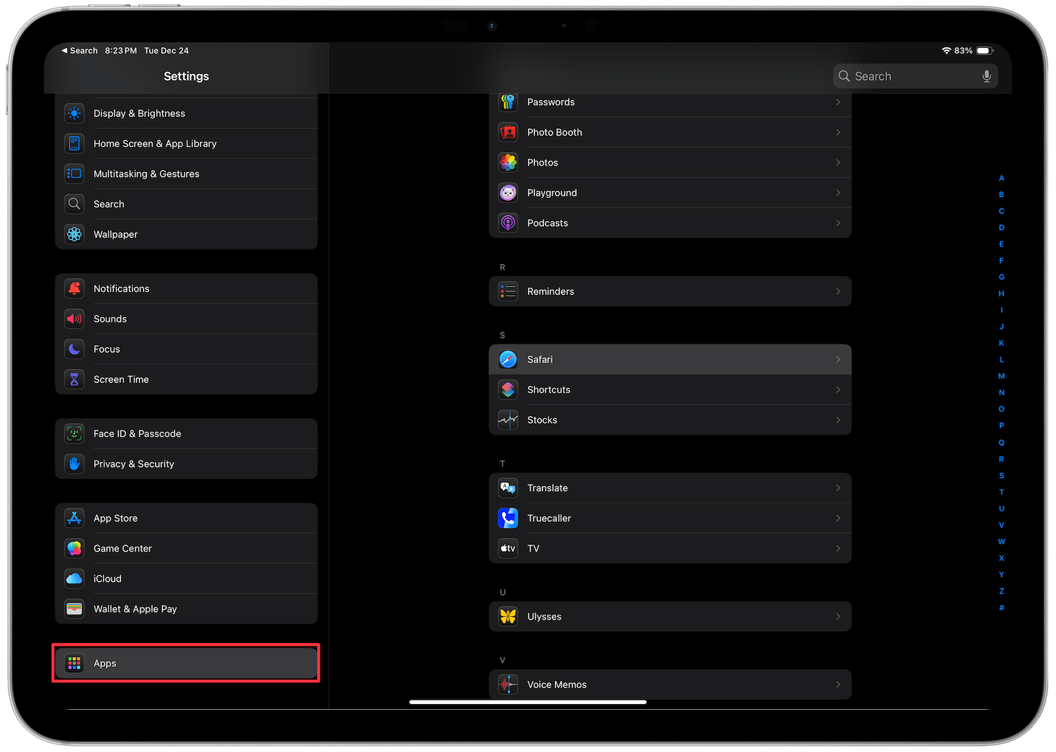 2. Scroll down to the bottom, and tap to open the Apps section.