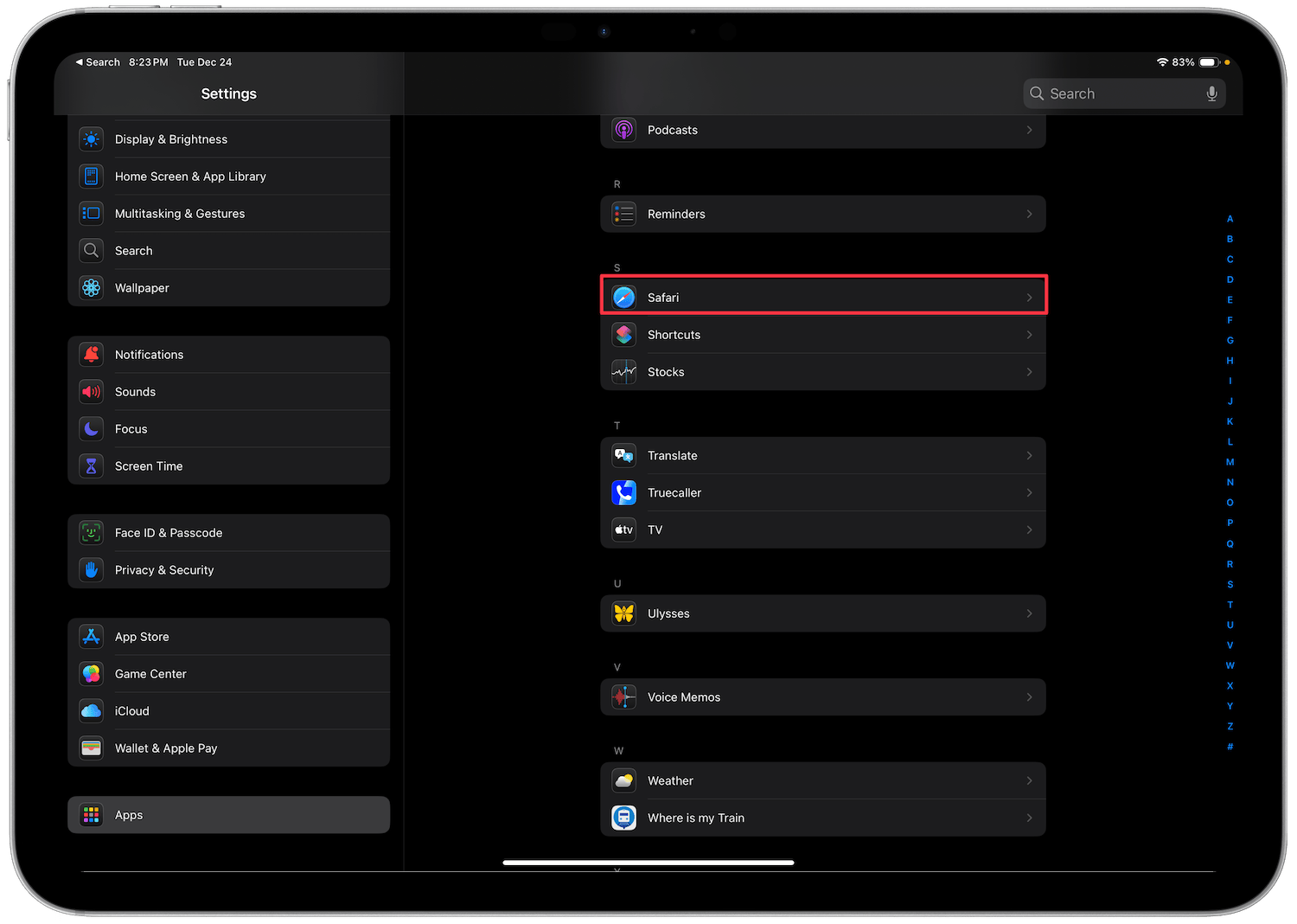 3. Tap to open Safari settings.
