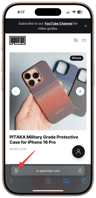 1. Open the URL you want to see in desktop mode and tap the menu button at the left side of the URL bar in Safari.