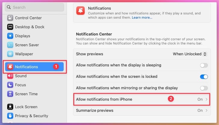 2. Open Notifications setting and click the Allow notifications from iPhone option.