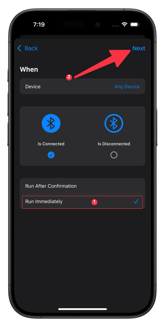 5. Tap on Run Immediately and then on the Next button in the top-right corner to proceed.