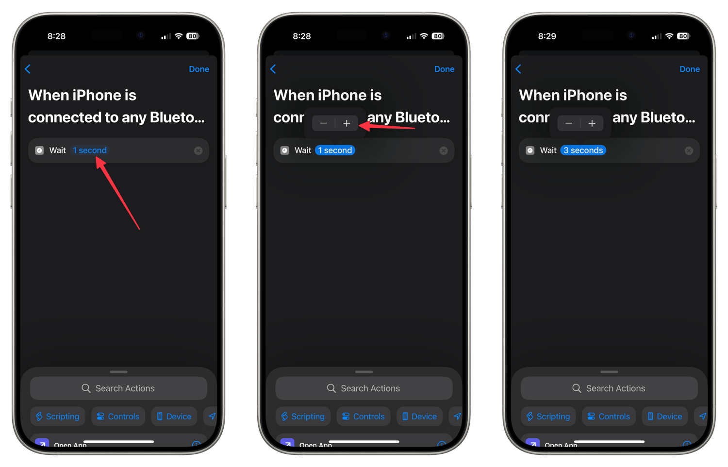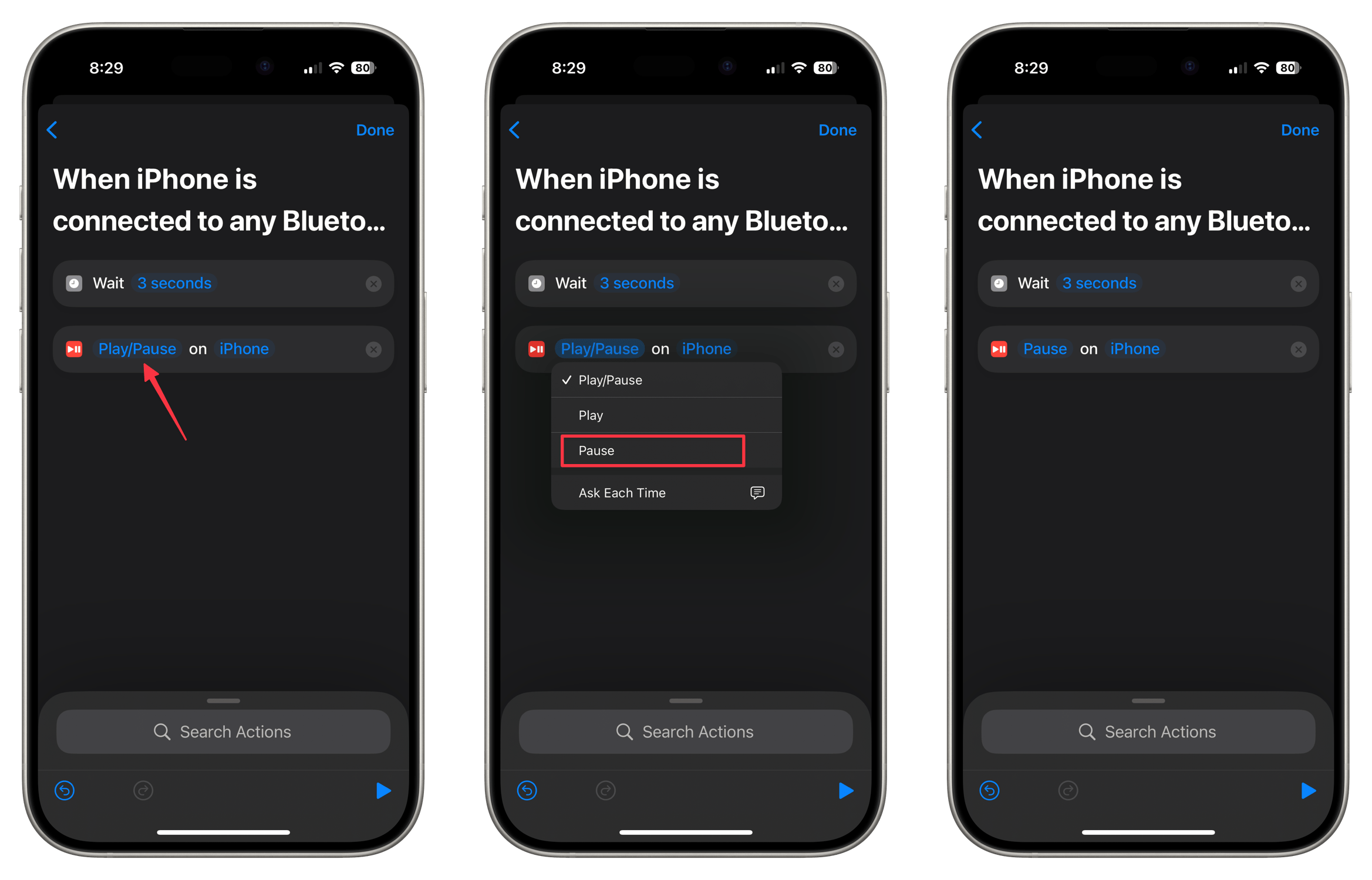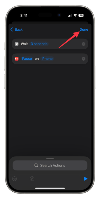 That’s it. Now, you have created an automation that will pause any media from playing whenever your iPhone connects to a Bluetooth source. If the automation still runs before the music start playing, adjust the wait time accordingly.