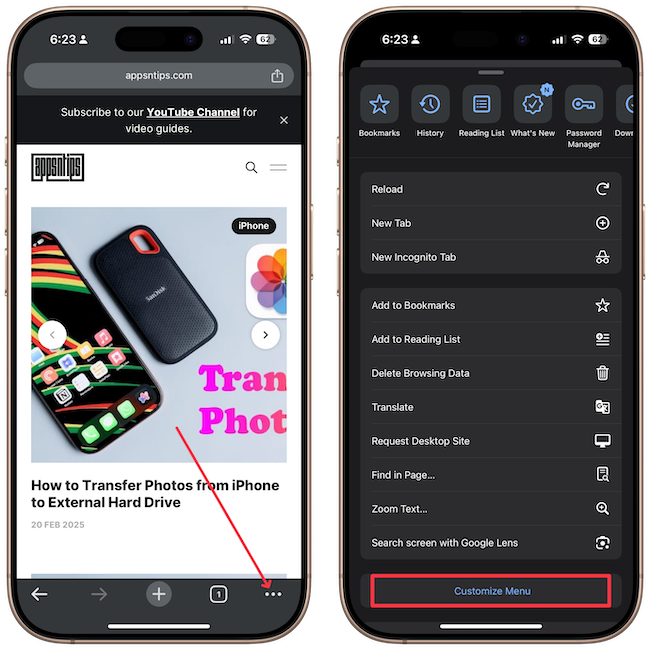 4. Tap the three-dot menu and then on the Customize Menu button.